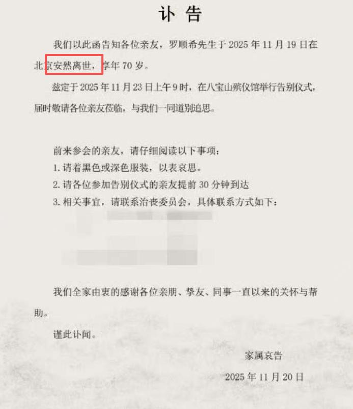 离婚传闻愈演愈烈,这个时候罗先生去世的消息也传出,讣告中可以明显的看出,