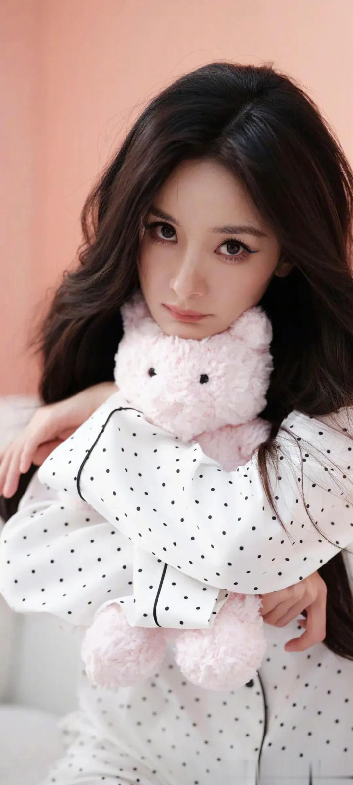 不是那种硬凹出来的精致,就是特别自然、特别放松的状态——穿着丝质波点睡衣,头发随意披着,抱着毛绒小熊歪头看着你,或者光着脚蜷在沙发上伸懒腰。