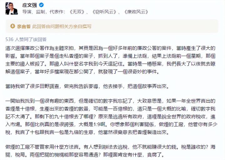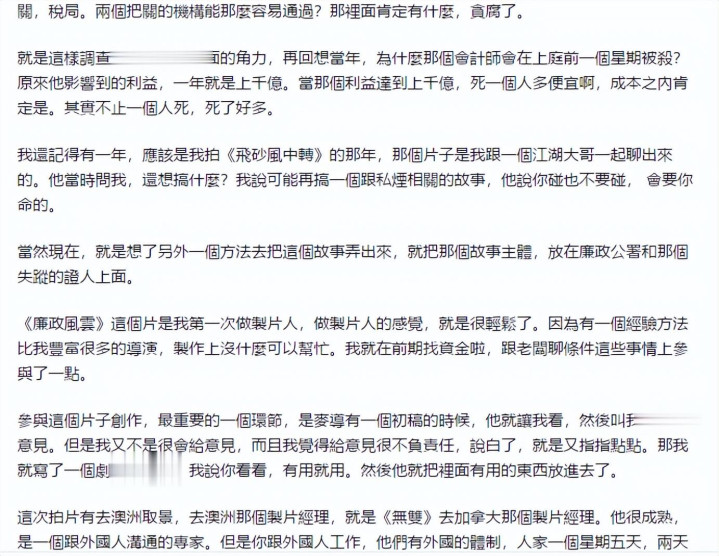 《内幕》本来片名是《廉政风云·内幕》,是《廉政风云》系列的第二部。上一部也是“麦庄”搭档合作完成,结果受口碑和票房影响,二者在社交平台开撕,庄文强用词犀利,甩锅自己没有参与剧本创作、批评麦兆辉排片水准不行,将对方贬的一无是处。
