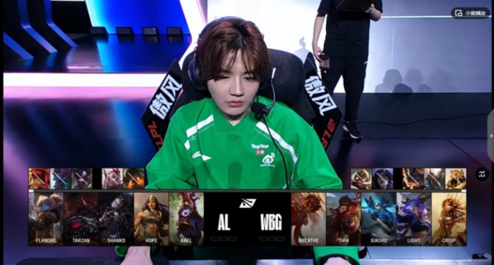 WBG:上单Breathe、打野Tian、中单Xiaohu、下路Light、辅助Crisp