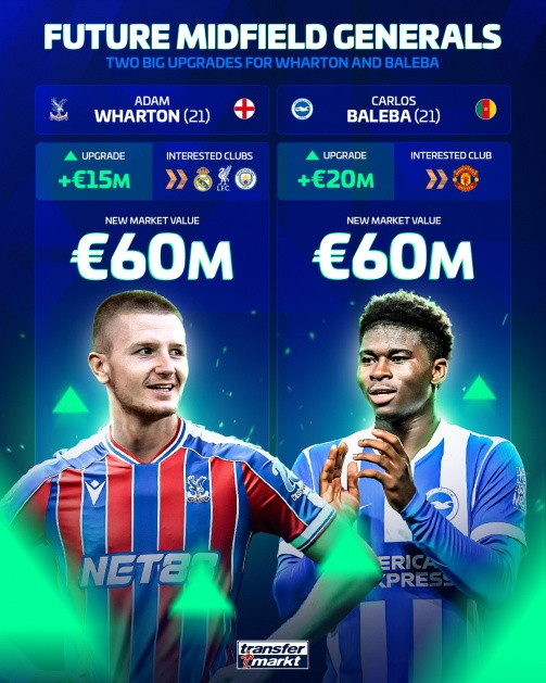 德转的管理员解释涨价原因:“巴莱巴和沃顿是目前世界足坛最有前途的两名防守型中场。今年夏天,曼联对巴莱巴产生了浓厚的兴趣,任何潜在签约的标价都在1亿欧元左右,而沃顿在皇马、利物浦和曼城等俱乐部也拥有众多追求者。”