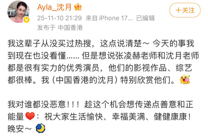 但这条问号的动态发布不久后,沈月就将其删除,然后再度编辑动态,认真回应此事。