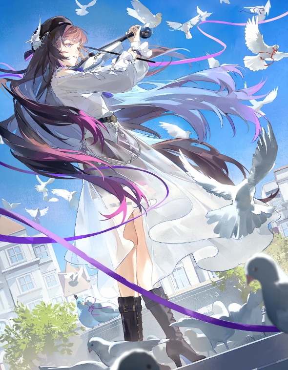 比如平行世界里的海瑟音,不是善战的海妖公主,而是一位小提琴演奏家,在白鸽广场奏响自己的音乐,朋友们化作身披彩带的白鸽翩翩起舞。