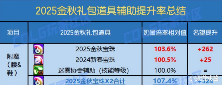 辅助职业的腰、鞋宝珠,相较于 2024 年新春宝珠,奶的倍率提升了 6.2%,提升十分巨大。